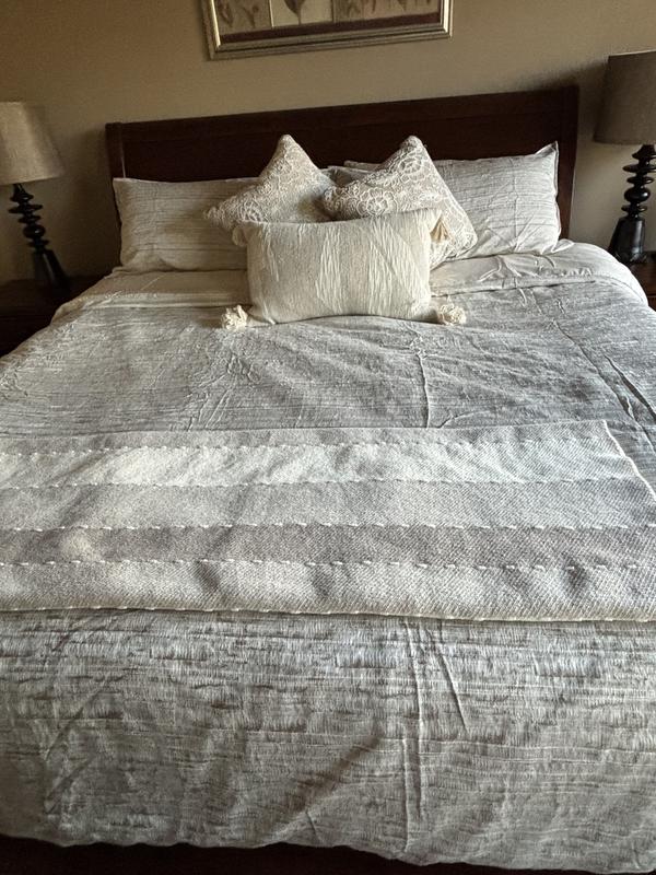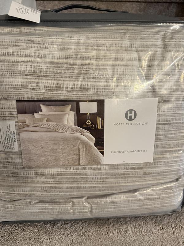This is an amazing comforter set! I have owned several bedding sets by Hotel Collection, and this one is my favorite. I have decided I prefer comforter sets vs. duvet sets as they seem to hold their shape better and are easier to care for. This one is beautiful, with neutral colors and very rich texture. Set consists of comforter and two matching shams. I was pleased with how the comforter “fluffed up” after removing from the packaging, and also how the wrinkles came out after being on my bed for a few days. It is a perfect mid-weight comforter that we will use year-round. Tag says this is machine washable - though the king size is so large it would have to be taken to an industrial laundry. In any case, I am thrilled with this comforter set!
