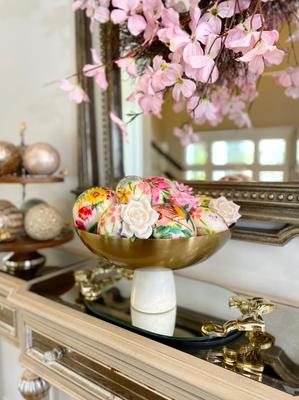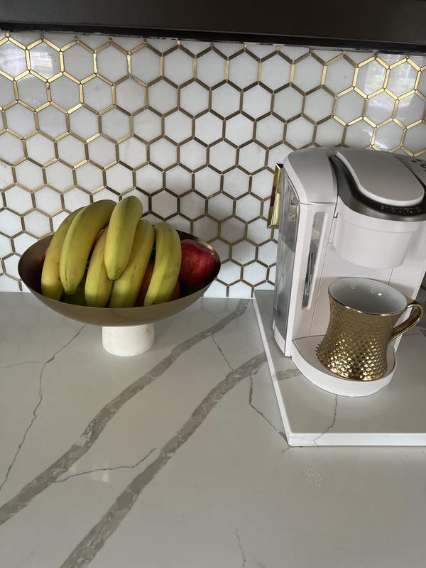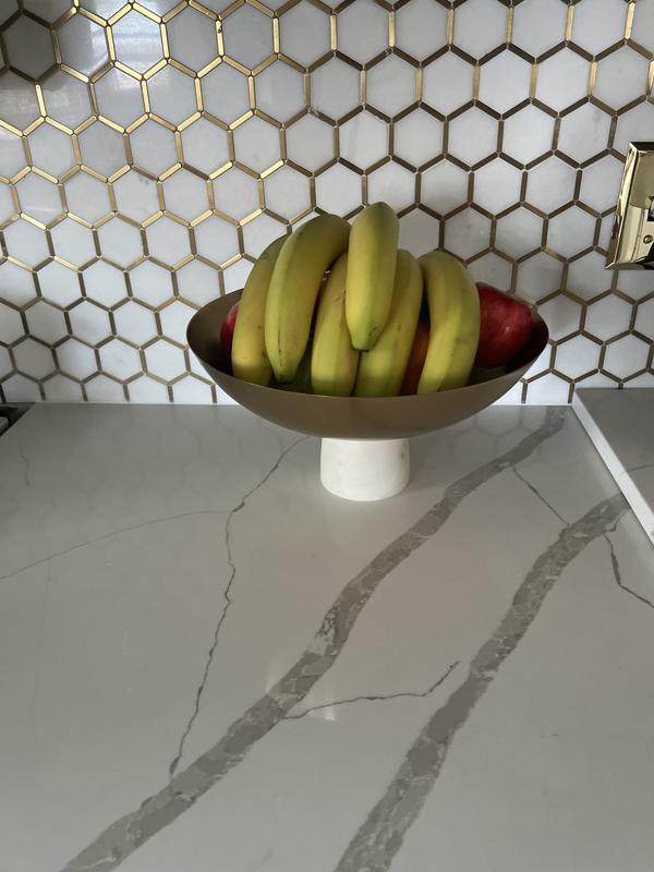 Gorgeous and worth the money. The gold is just right and the rest marbled base is beautiful. Couldn’t be happier with my new elegant fruit bowl