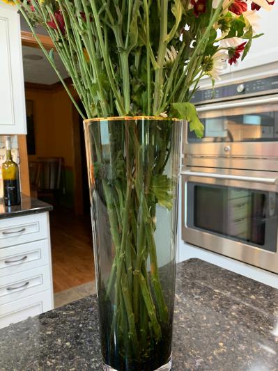 This vase was much bigger than I expected so it makes a statement on your table or where ever you intend to place it. It had a nice stylish sleek design and it’s so heavy and study in design. The gold trim gives it. Nice touch.
