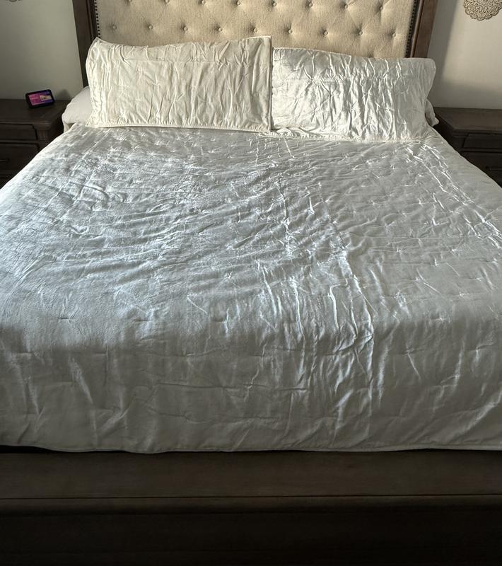 This velvet king-size coverlet set is absolutely luxurious!The fabric is soft,smooth and has a beautiful sheen that gives my bedroom an elegant touch.It’s warm and cozy without being too heavy perfect for all seasons.I love how it instantly makes my bedroom look stylish and inviting.It comes with bed cover and two shams. Highly recommended for any one who wants comfort and elegance in one .