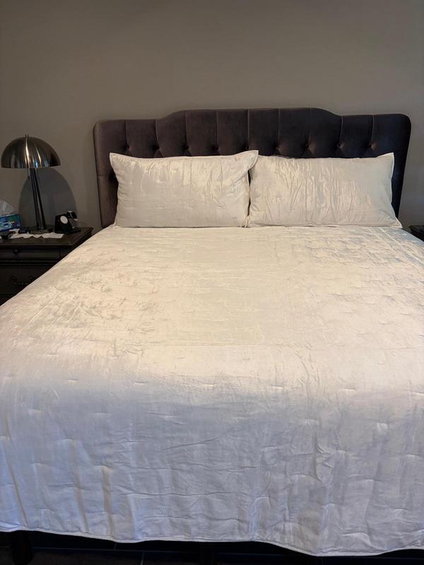 Luxurious and Beautiful - Love It! I just received the Hotel Collection Velvet 3-Pc. Coverlet Set in Full/Queen from Macy’s, and I’m really impressed with it so far! First Impressions: Right out of the package, this coverlet looks stunning on my bed. The plush velvet texture has a gorgeous lustrous sheen that catches the light beautifully. The cream/ivory color is exactly what I was hoping for - elegant and sophisticated, giving my bedroom that high-end hotel feel. Quality: The fabric feels incredibly soft and supple with a nice weight to it - lightweight enough for comfort but substantial enough to feel luxurious. I love that it’s OEKO-TEX certified and machine washable, which gives me peace of mind about both safety and easy care. The craftsmanship seems solid, and the set includes two matching shams which complete the look perfectly. Style: It pairs beautifully with my tufted headboard and really elevates the entire room. The velvet texture adds depth and richness without being overwhelming. It’s exactly the sophisticated, hotel-inspired aesthetic I was going for. Value: I got this during a sale at an amazing price, which made it an even better purchase. For the quality and look, it’s definitely worth it. Overall: Highly recommend if you’re looking to create a luxurious bedroom on a budget. Can’t wait to see how it holds up after washing!