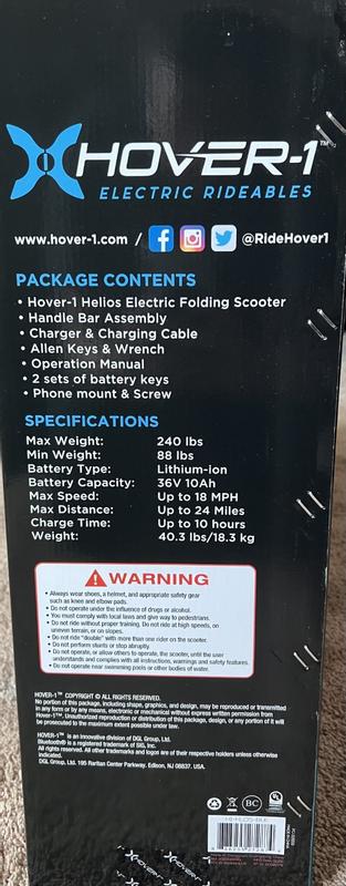 Helios Electric Scooter with 500w Motor, 18 mph Max Speed, and 24 Miles Max Range
