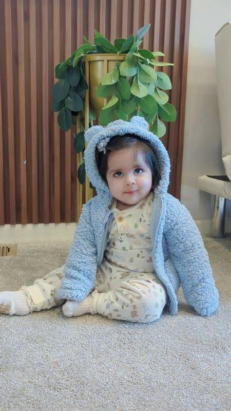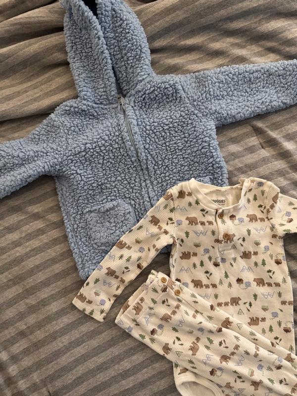 This Huggies Baby 3 piece boys Sherpa Jacket set is so cute and the perfect set for a new baby boy! The coat is super soft and so snuggly. The fabric and theme of the outfit is so cute and a perfect every day outfit for baby boy. I love this set and would recommend it to anyone shopping for a baby boy!