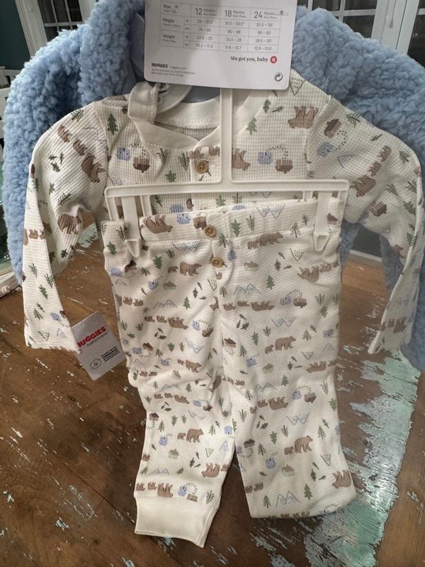 This outfit is super cute! It is made extremely well and the fabric is soft and comfortable. It fits perfectly for 18 months and is a great fall outfit. Huggies makes nice baby clothes!