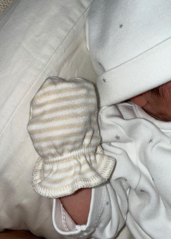 These are so great! My sister had twins and had been struggling with clipping their nails so that they were short enough that the babies wouldn’t accidentally scratched themselves. She was having such anxiety every time she went to cut their nails and tried other kinds of coverings/gloves to cover the babies’ hands, but the babies would always end up wiggling them off and scratching themselves. These are not only super cute, but they’re incredibly soft, they come in a value pack, and they stay put! They are gender neutral, so they easily match any outfit. Also, theyre machine washable and stay new looking for a shockingly long time. She showed them to me the other day and they were so filthy that I thought there was no way they could ever look nice again. But then after a cycle in the laundry, they looked like new! Definitely recommend these to all parents and caregivers of little ones with little hands!