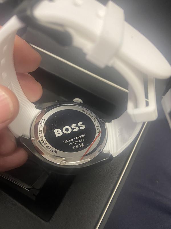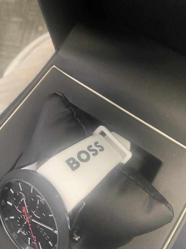 I was really excited to get this watch. I’m the photo it’s perfect for summer and is a bit sporty. Unfortunately when it arrived, the band was white and it only said the world “BOSS”. In the photo it also says Hugo Boss which fills in the band. With just the word boss it’s not even centered. I started googling to see if what I received is even authentic because it doesn’t look like it. From my understanding, Hugo Boss split into two, HUGO and BOSS. I really wish the photos gave an accurate picture. The watch itself is still nice and looks good on wrist but I don’t like that BOSS isn’t centered.