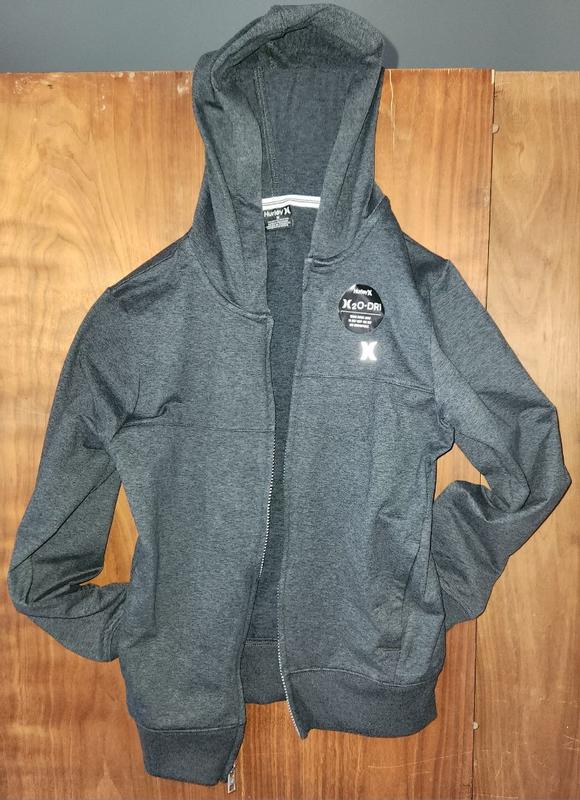 I got the Hurley h20 Dri zip up hoodie for my great nephew. It is simple, pretty light weight & cool. It is a little big for him (I sized up so he can use it for the school year.), but very comfortable. The zipper is smooth & easy to use & the simple dark color matches any outfit.
