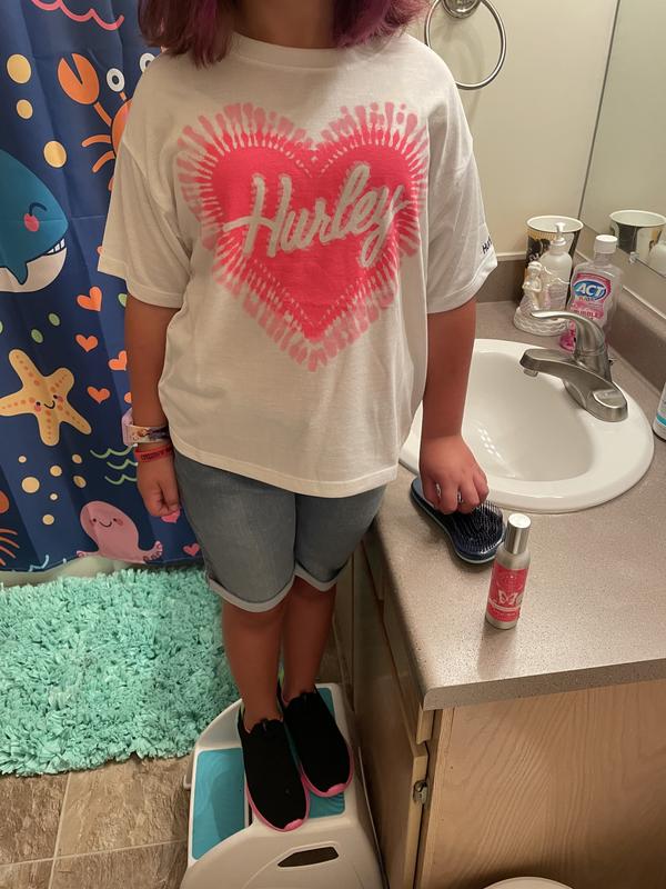 This Hurley - Hurley Girls Boxy Tee is very cute. its true to size and comes a little cropped. its not to cropped but just enough to show some skin if you are not wearing high pants. love the design on the shirt and didnt shrink after washing!
