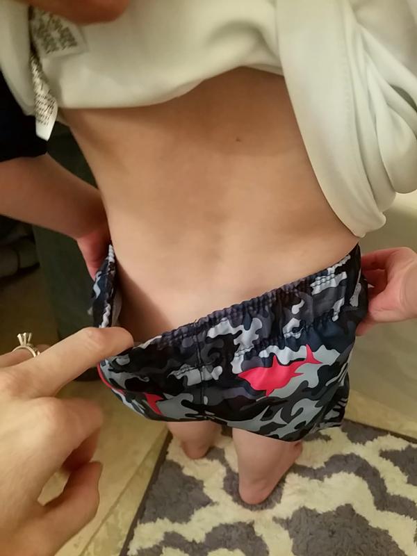 The swim suit is so cute and made of quality material. It fits perfectly on my boy, the fabric doesn't scratch or give any rashes. Seems to be very comfortable.