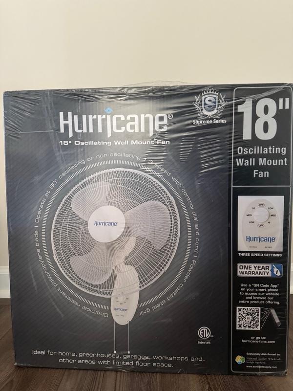 Supreme 18 Inch 90 Degree Oscillating 3 Speed Wall Mounted Fan, White
