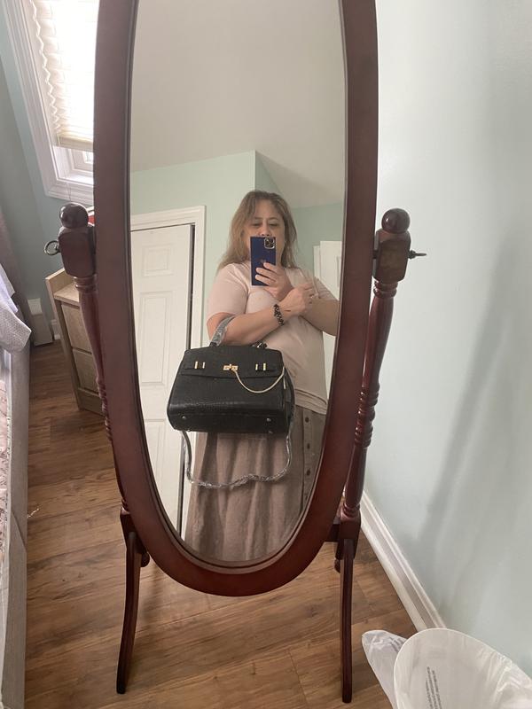 I really like look of this purse. I choose big purses as I usually have a lot of stuff so be able to fit everything in and still look stylish is key to me . The croc look makes this purse very versatile and it can be used for day or night .