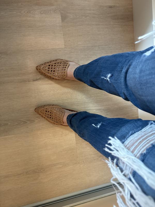 Nice style and unique heel, with nice weave. Poor quality in workmanship- uneven glued sole- bumpy. Disappointed.