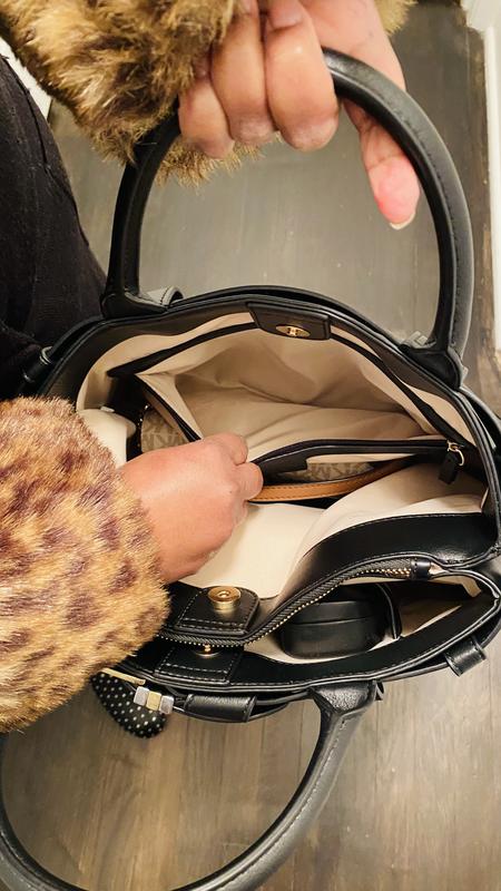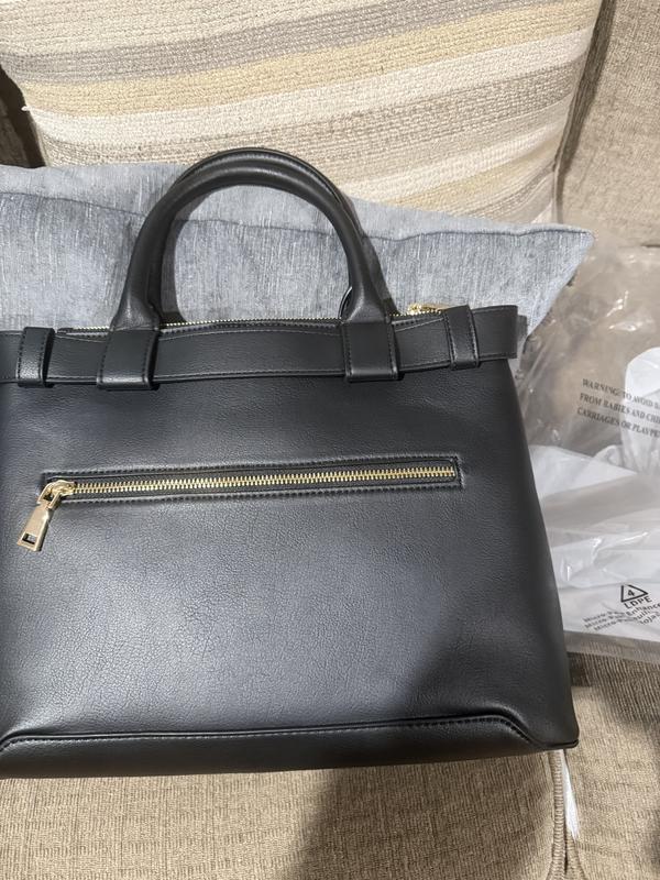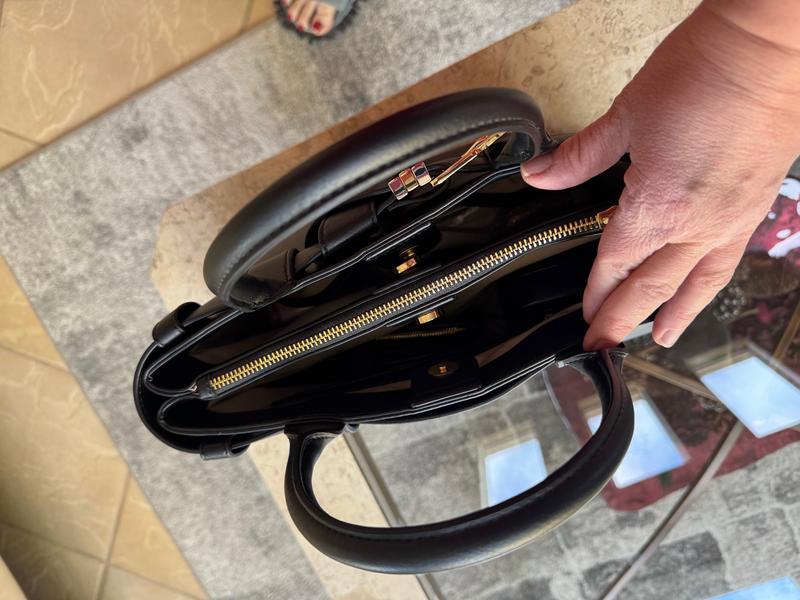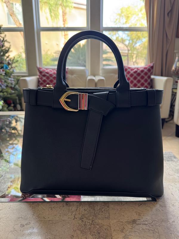 This satchel bag is so appropriately made for the days you need the “extra room” we all long for in a pocket book. The various compartments allows you the ease of placing larger items you normally can’t do with an average size bag, be it your I pad, your eye glass case, phone etc. it sure has the space! The design that was chosen with that “belt”look and the gold hardware, does add more to its outside beauty. Looking for a satchel handbag that works for you in giving order and ease to find your stuff? look no more, this one is it!!!!!!