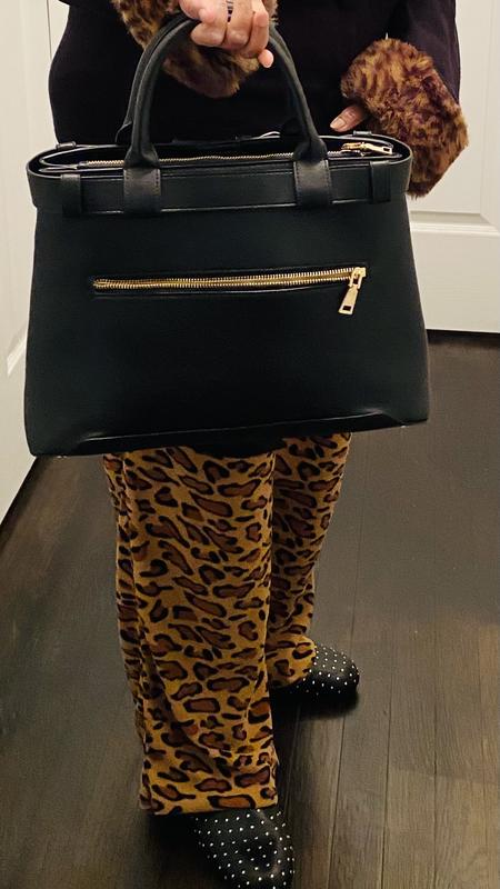 Excellent for any occasion very convenient and stylish goes with style excellent for work nice hardware I have it in black with gold hardware loos beautiful I’m excited to show it at my job my books water fits perfect.
