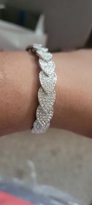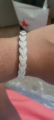 This is a beautiful bracelet. It stretches over the wrist for a great fit. The eye catching sparkle from the jewels in this bracelet is beautiful. This would be a great piece to pair with any outfit from causal to dressy.