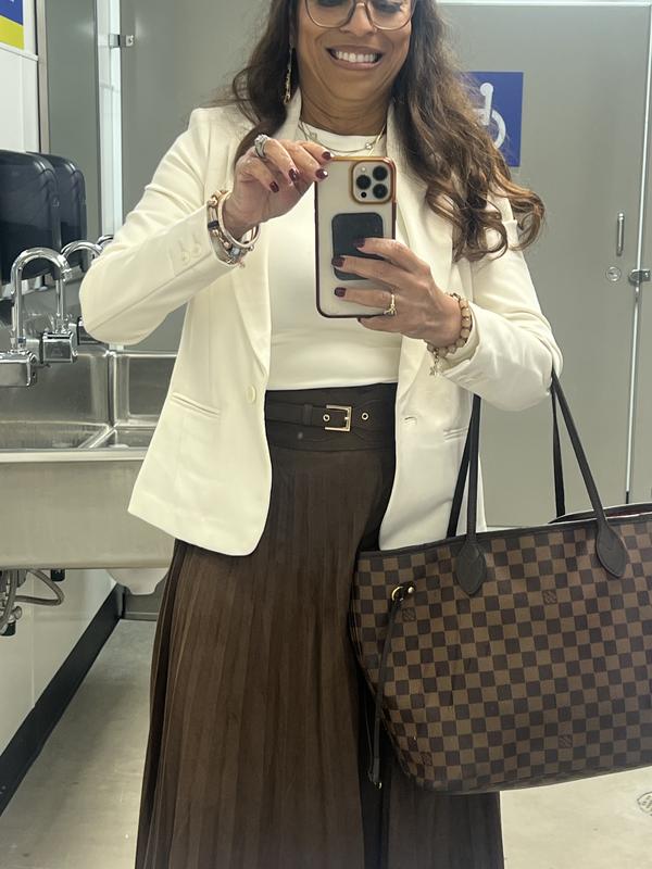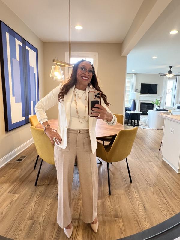 This is a beautiful blazer! I’m so glad I found one that fits perfectly. The material is very soft and also a little stretchy. I purchased in off white