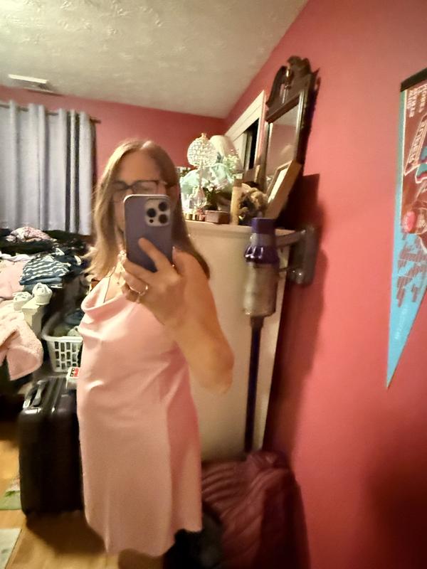 I wasn’t sure about this, but the color is beautiful. The material is soft and silky. My hubby doesn’t like the color pink and he was impressed with it. I’m usually a medium, but lost some weight spigot this in a small. Fits perfectly.