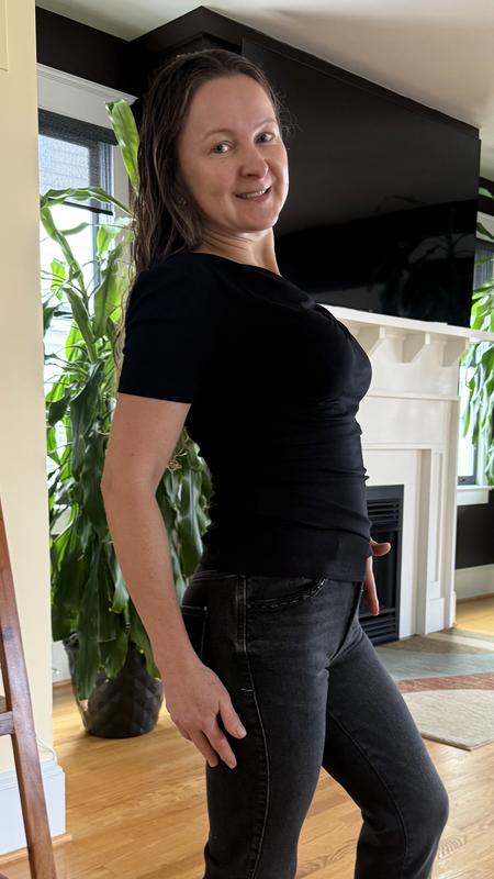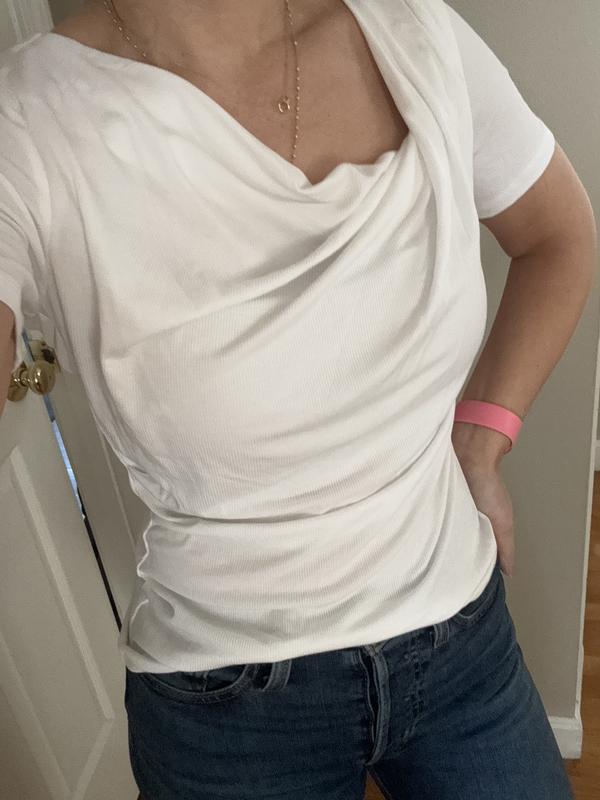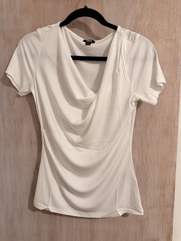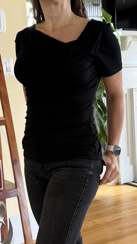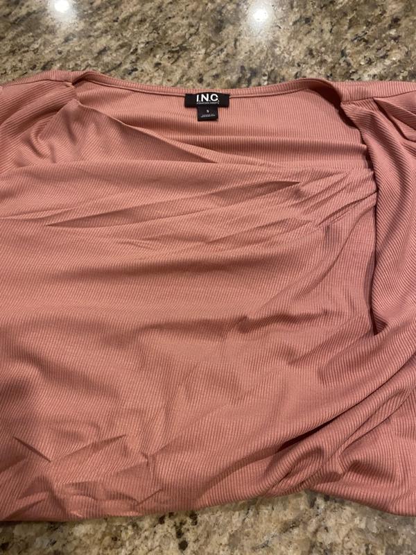 This top is sleek and slinky. I look how it drapes on my body. I’m not usually a fan of bay blue- but I’m sure glad I took the chance. The color looks amazing on. Thank you Macys for a great piece. ❤️