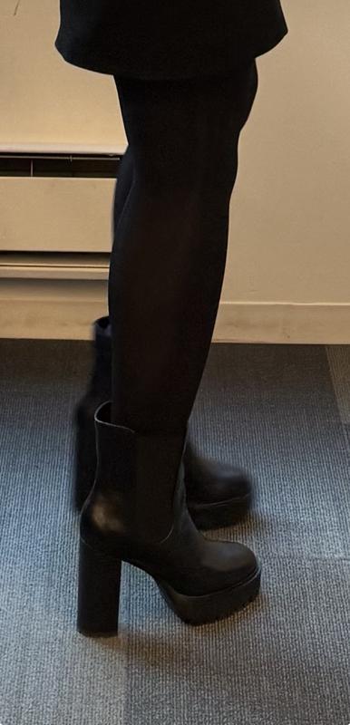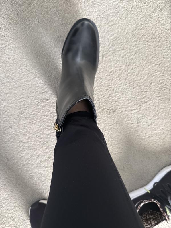 I love the heel height and the color. They fit great, but they are extremely wide at the top. They look very strange when wearing leggings or jeans that are not wide at the bottom. I will be returning them.😕
