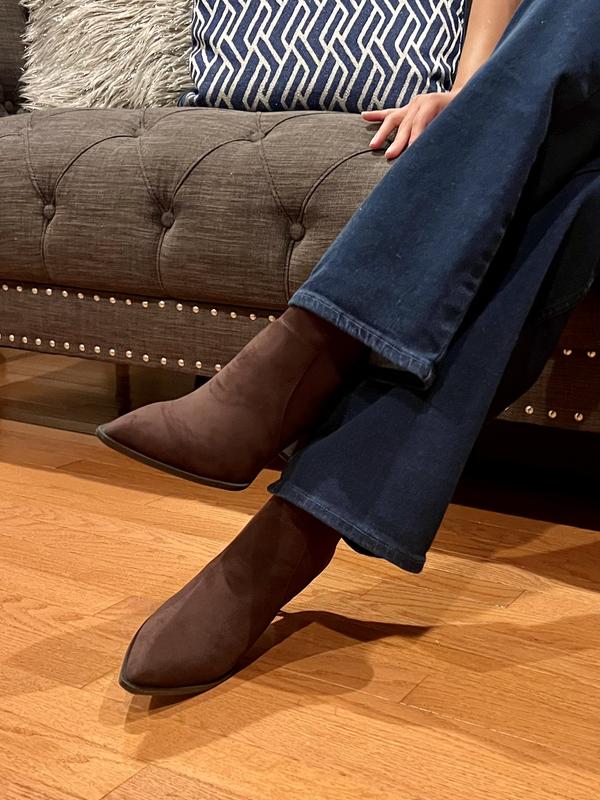They are so cute, better than I expected! These booties are very fashionable. I got them in chocolate brown, which is super trendy. They are very stylish, with a pointy toe, and low heel, really comfortable. Just perfect for me! I’ve already received many compliments. The quality is excellent, and I love the material.