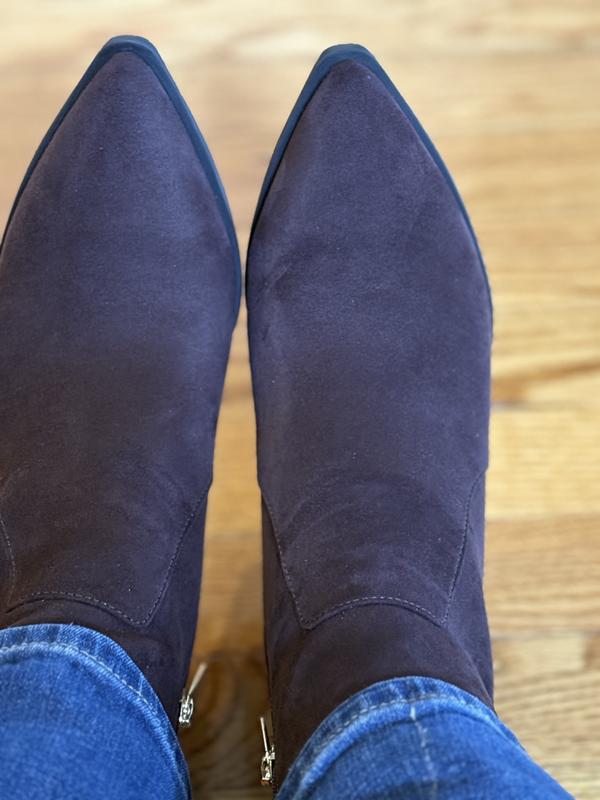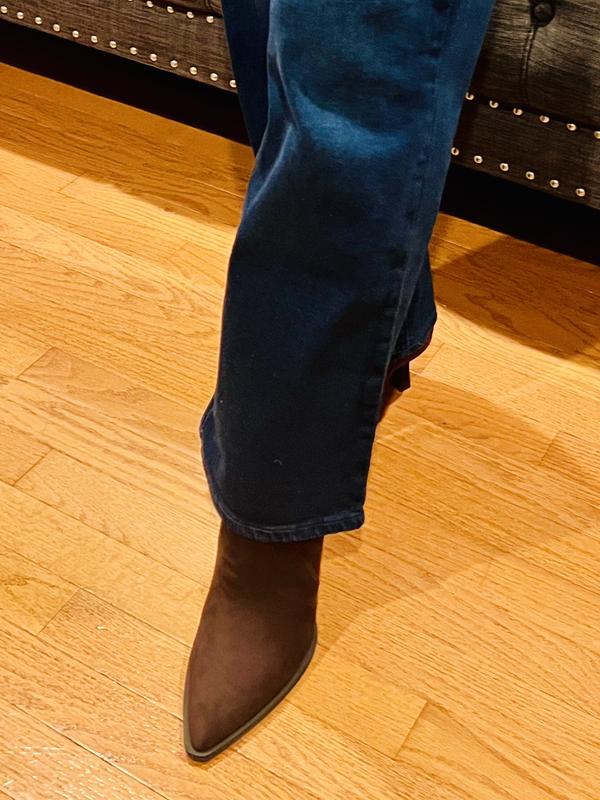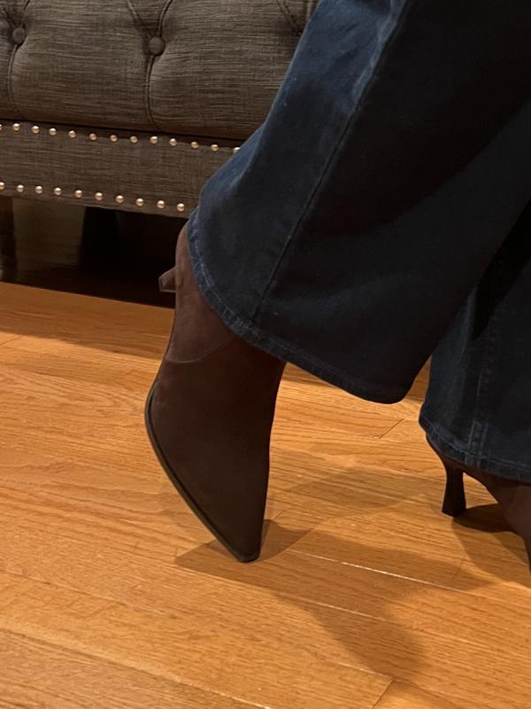 I absolutely love these booties! The truffle color is a beautiful, rich neutral that goes with almost everything — jeans, dresses, or tailored pants. The suede feels soft and high-quality, and the low heel adds just the right amount of height without sacrificing comfort. They fit true to size (I’m usually an 8), and the pointed toe gives them an elegant, modern look. I’ve already received several compliments wearing them. Highly recommend if you want something chic yet wearable all day!