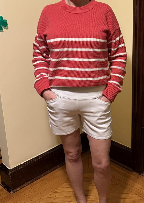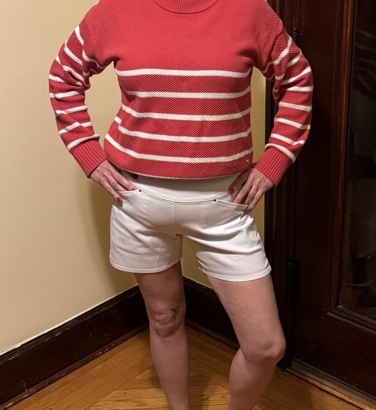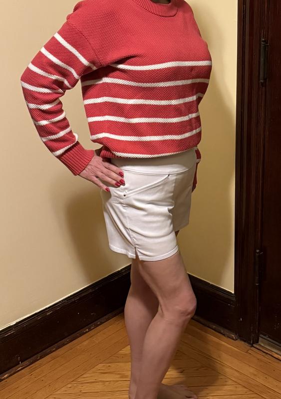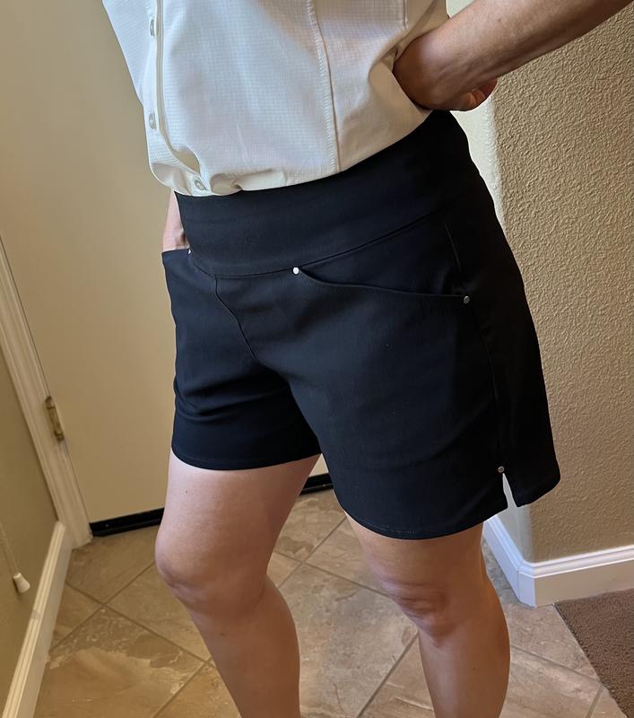 Love these shorts! Comfortable, nice material, & the perfect length for me. I originally bought them in pink, & I recently bought them in black and white as well.
