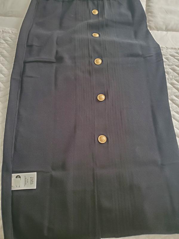 The buttons on the skirt are on in reverse meaning the face of the buttons are inside while the back side of the buttons face outside - crucial obvious mistake. Where was quality control? I am returning it. I wanted to wear it with the matching top I purchased. I'm wondering if all of these were assembled this way.