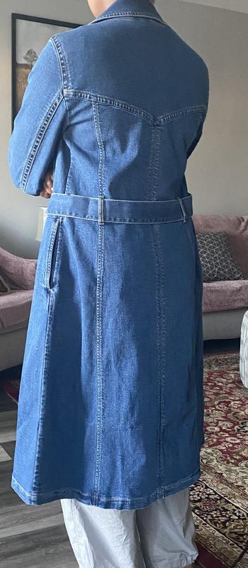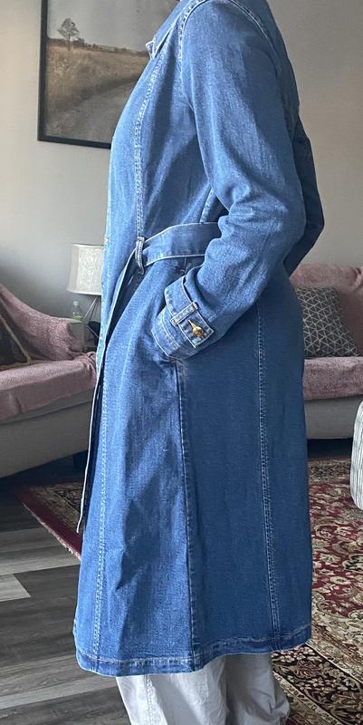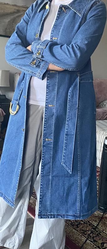This jacket/trench coat is super cute! I personally LOVE the color of the gold buttons up against the rich blue denim. The color is saturated and complimentary. It’s a heavier weight so that makes it more useful- not just super cute. I collect jackets/coats/puffers/denim jackets. This one is def one of my favorites. I’m planning on wearing it open most of the time and the length is my favorite part. I’m 5’3” and I love the coverage. Pop the collar, roll the sleeves, and this jacket levels up my outfit! Spring, summer, and fall- I can’t wait to mix it into all my seasonal outfits!