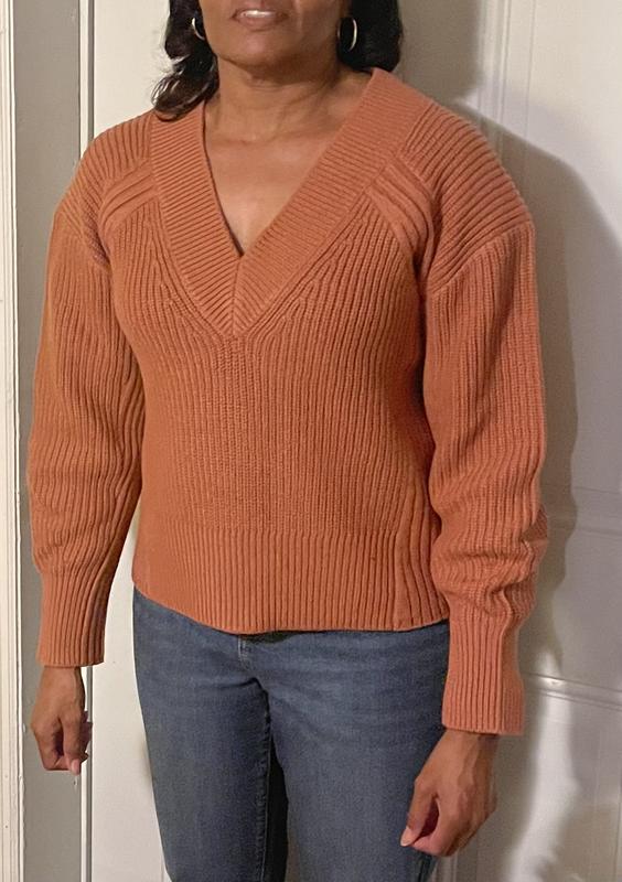 I returned it as I didn’t like the thickness of the seam where the sleeves are attached to the top. I’m 5.4 and wear a small regular or petite, if I was taller or skinnier, I may have liked as oversized but the ribbed heavy knit didn’t work for my frame.