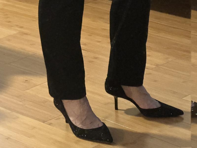 I love this shoe. I bought them in black and red. These are no longer for evening events. I paired my red ones with jeans, a solid tank and denim jacket. I bought a small red sequin bag to top it off. It was stunning and classy. Denim and bling is a thing.