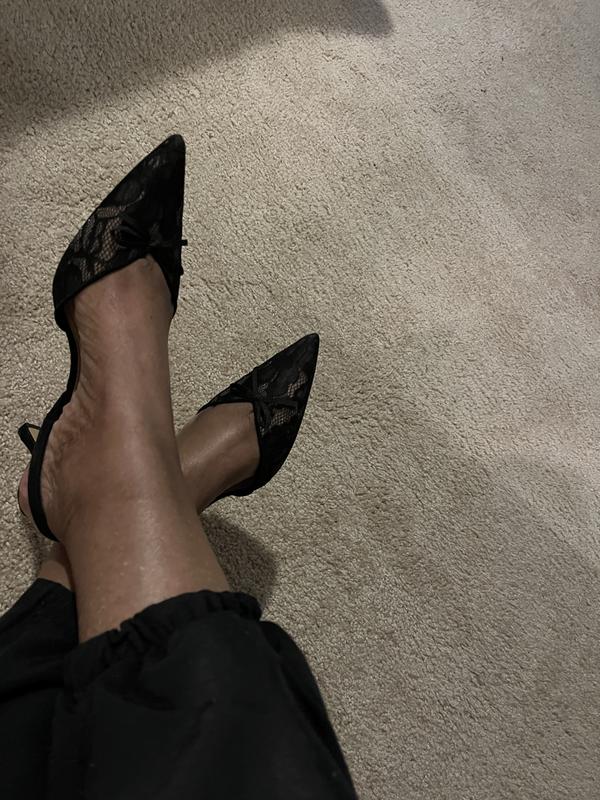 Very cute pair of shoes. Nice kitten heel. Great arch support. Looks elegant. Extremely comfortable.