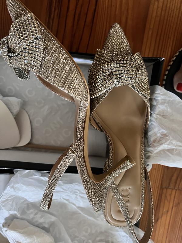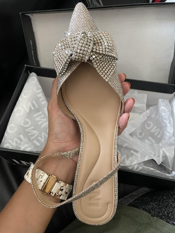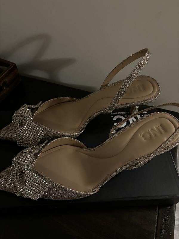 Wonderfull and eye catching pointed toe womens slide made by I.N.C International Concepts. This pointed toe slide looks very attarctive and impressive. My wife loves that so much and her friends compliments her for that nice looking pointed toe slide. This is very well made by I.N.C., Size 6 fits perfect. The flower bow is made with stones and looks very shiny too. The hill is 2.5 inch tall and looks absolutely perfect. The sole is also soft and not too hard. Every one loves the look of that pointed slide. Will be very good to wear on party night. Recommended to all.