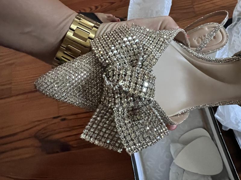 When you first see these heels, you are just in awe with how beautiful they are. The gems on the bow are so eye catching, anyone who sees them would most likely compliment them. I’m normally an 8 but these seem a smidge snug on me. Maybe it’s because I have to break them in but when I wear them, it doesn’t seem like I’d last a whole night comfortably walking in them. I do love these but wish they were a little more comfy.