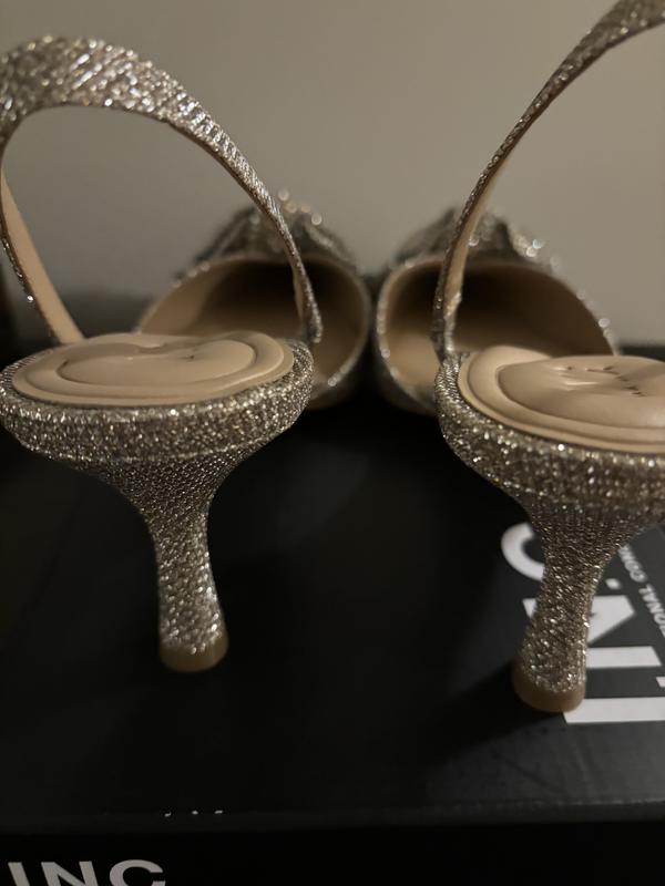 Great kitten heel pumps. Pictures do not do these shoes justice. They are so pretty and sparkly in person. You can dress this sparkly pumps up or down. Wear with jeans for a nice sparkly pop or with a nice dress for date night.