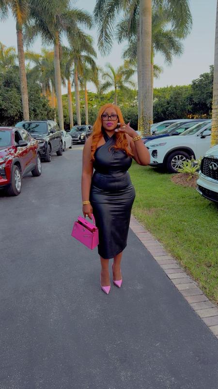 Love the dress. Love the material. It has a good amount of stretch and length to it. The dress hugs the body really well. I did purchase a size down from my normal and while it did fit me (I'm a thickums), I was a bit uncomfortable. Overall, I like the dress. Plenty of compliments.