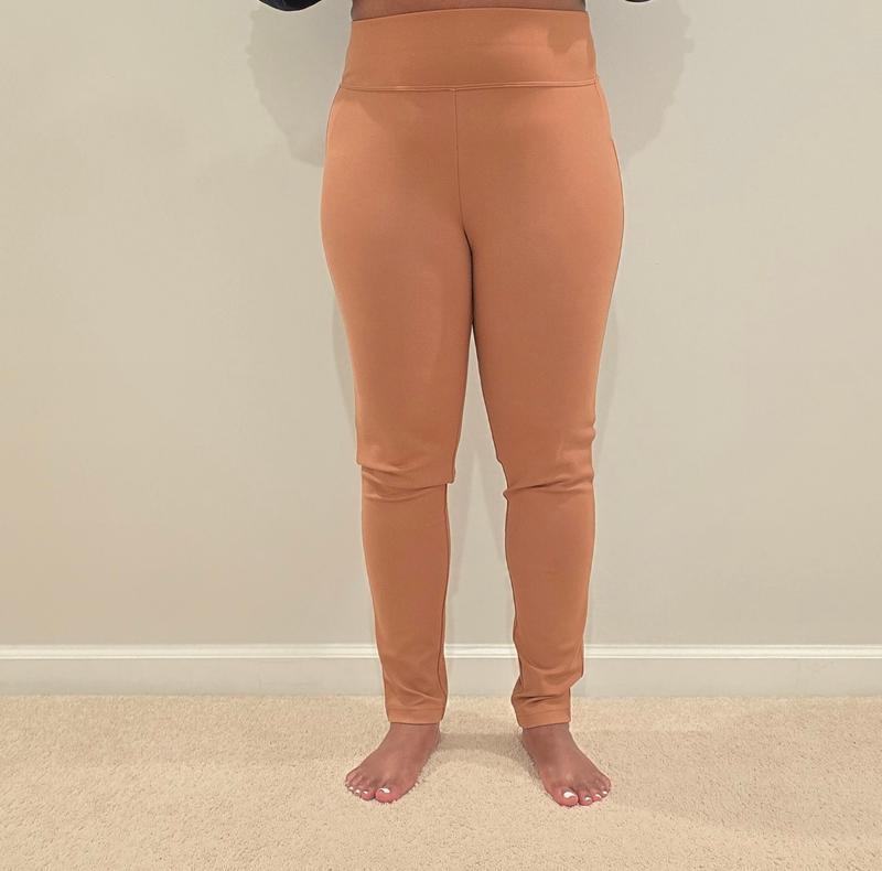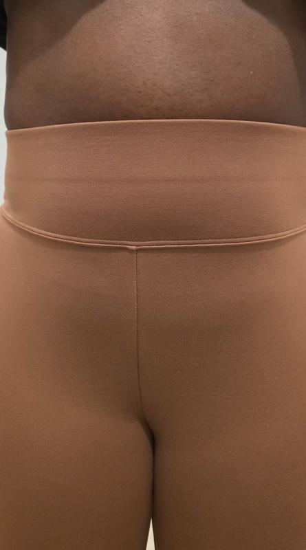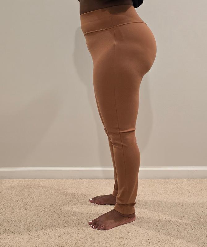 Love these leggings! I like the versatility of them. You can dress them up or dress them down. They can be worn with sneakers or pumps and look amazing. They feel like compression leggings in that they hold your belly in. Very very flattering.