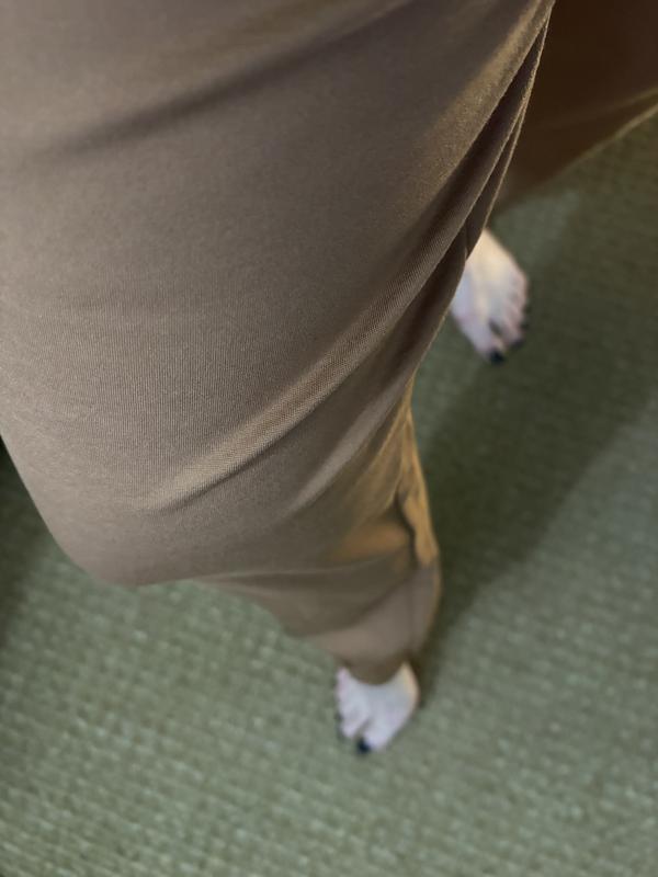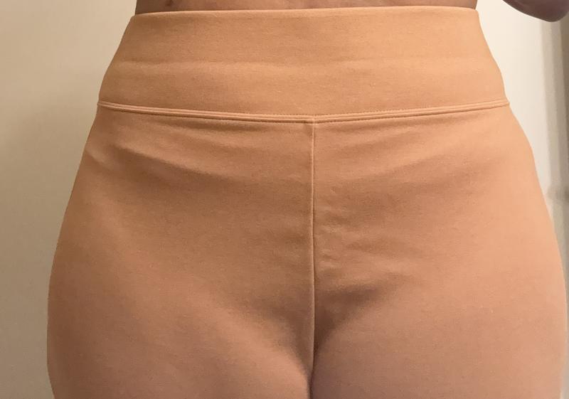The pants are a nice quality and weight, but I wished it was available in petite. They say that the color is "brown" but it really a tan color, so I disappointed when I received it. The material for a ponte knit is really nice.