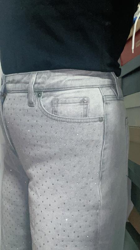 These jeans are super cute. They’re high waisted and have a nice amount of bling on them. I am a shorter gal 5’3’ and these are the perfect length for me as reference this was a size 2, and I’m 125 pounds. You can dress these up for a night out or go casual, The gray color Is the chameleon to match everything. I definitely love them and got plenty of compliments when I wore them