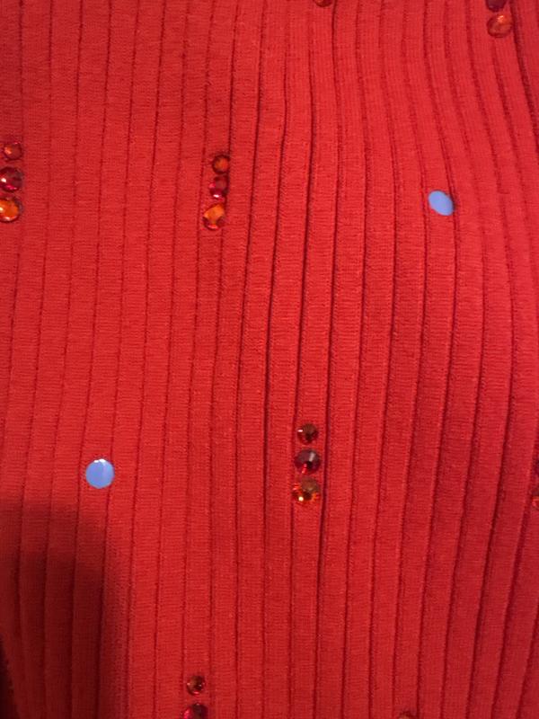 Bought this beautiful 3 piece set, which was not cheap and wore to a special event. The rhinestones were falling off and I was picking them up off the ground. There is a big blue dot 🔵 instead of maybe having a red dot 🔴 which would not make it so obvious that you are losing rhinestones everywhere. I will be returning the cardigan. Skirt and tank did not seem to lose the stones.
