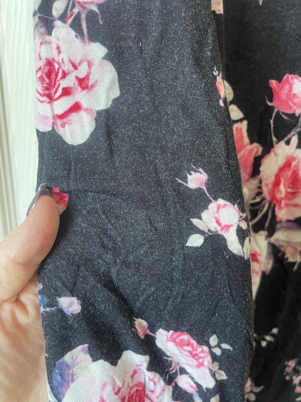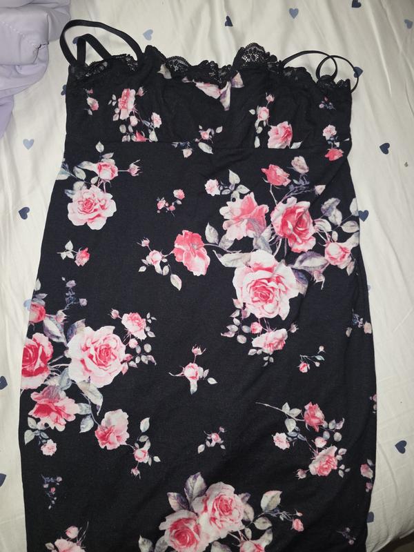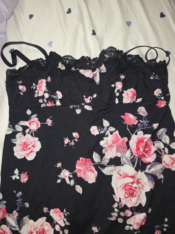 The print of this slip is gorgeous. The flowers brighten up the slip. It is very sexy. My only flawless part about this dress it fits a bit small. It's a bit shorter than I expected. Overall it is a very cute slip.