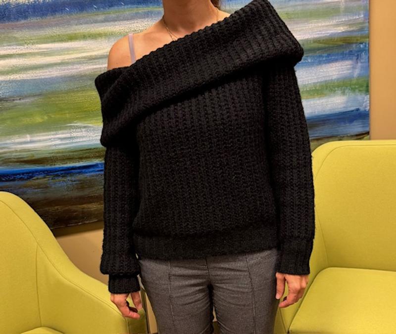Soft, comfortable off the shoulder sweater. Easy to wear with pants, a skirt and jeans. Wear it off one shoulder or both. You can wear it year round. Dress it up for a night on the town, casual day out or for work.