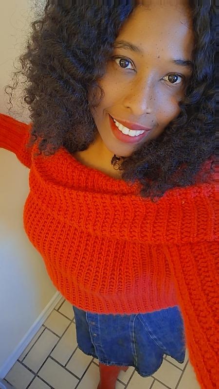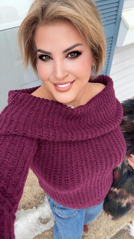 I wore this red sweater for Valentines day. It fit perfectly. Was off the shoulder, very soft and comfortable.