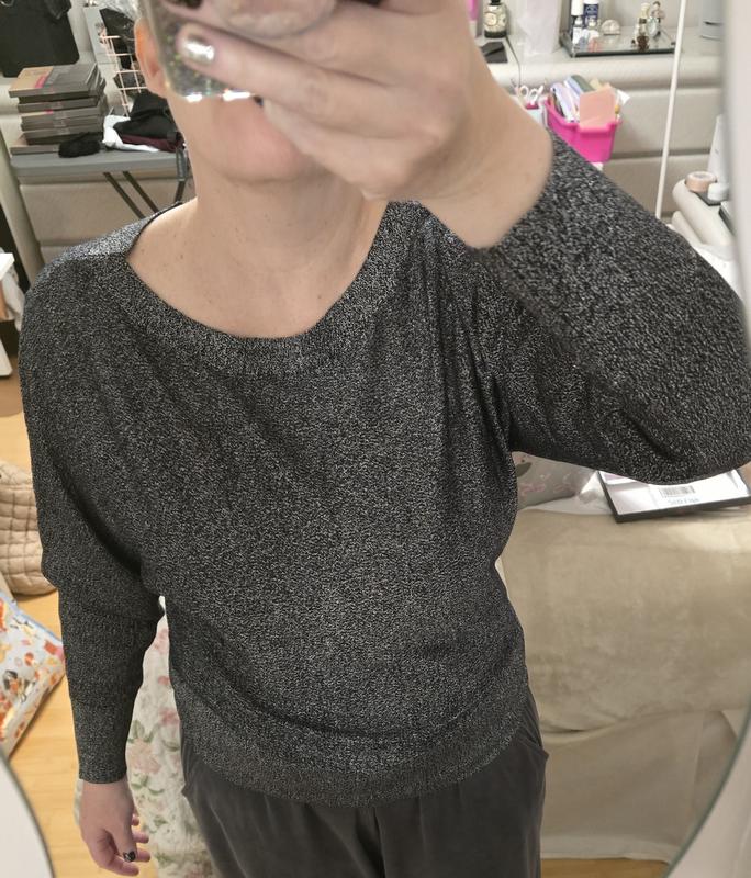 . I love a boat neck with raglan sleeves and this had both. My favorite. I would have preferred it not to be lurex fabric as this limits the occasions you can wear it to. However, I was off to the races, so it was suitable for that. I got several compliments. The sizing is perfect. I love the color. I would recommend this top.