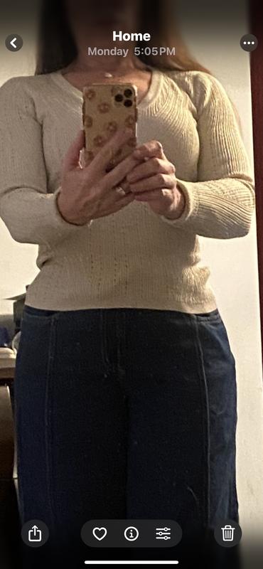I’ve had some INC Holiday sweaters for 15+ yrs, so it was time to get some new ones. The angled lines work so well for my body type and are so flattering. The fabric isn’t super soft due to having metallic threads woven throughout but it feels better on than you would think.
