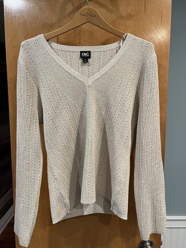 Women's Metallic-Knit V-Neck Sweater, Macy's Exclusive