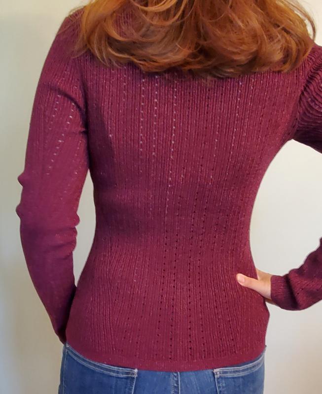 Beautiful sweater ideal for a social event or for work. It is tight to the body and has some shine which makes it more elegant. It is versatile and can be used by women of any age. It is true size. It is pretty