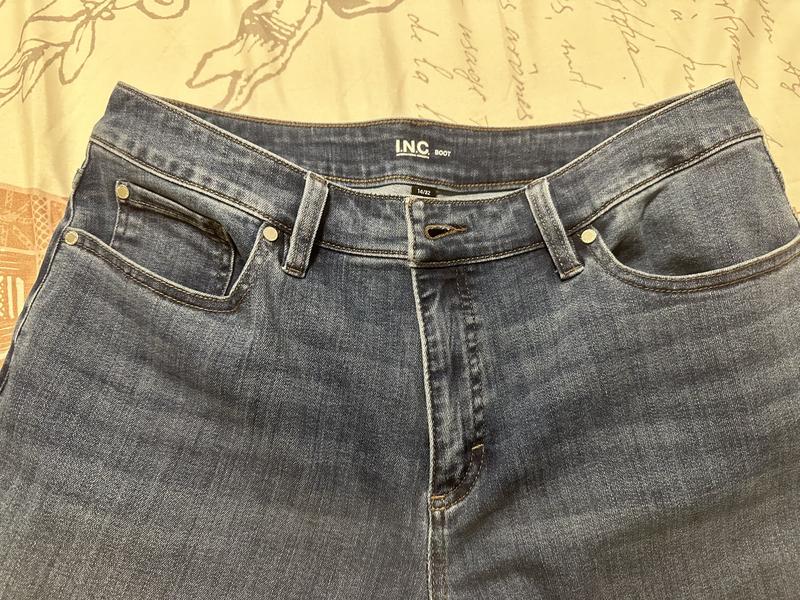 The INC boot cut jeans are perfect. The fit is great, and the material is nice. More Demin than stretch material. I ordered the short and they are perfect with a small heel. I am 5'3". The faded color is a great shade and goes with everything. I wear with a small dress heel or boots. The pockets are deep and you can fit your keys and phone in them