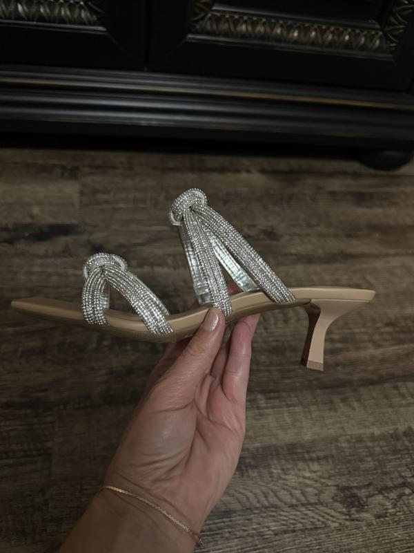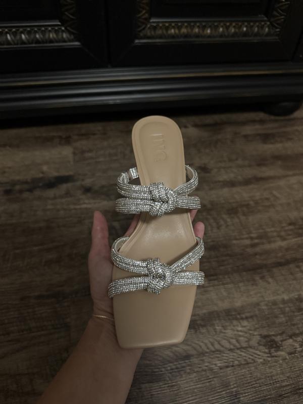 OMG! These shoes are fabulous! I love them. They are the perfect height for me to wear on a cruise for evenings. The rubber bottoms are also great for that. The pictures do not do them justice. They are the perfect bling and fit. They are also very comfortable.