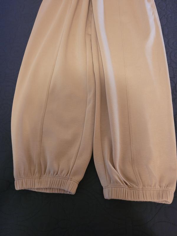 Comfortable joggers….. great alternative for traditional sweats can be dressed up with high heels or flats for a casual look. I was worry about the elastic at the bottom and was comfortable on did not “dig” in my skin or leave any marks. It’s also machine wash. Too short for me…but I have long legs.