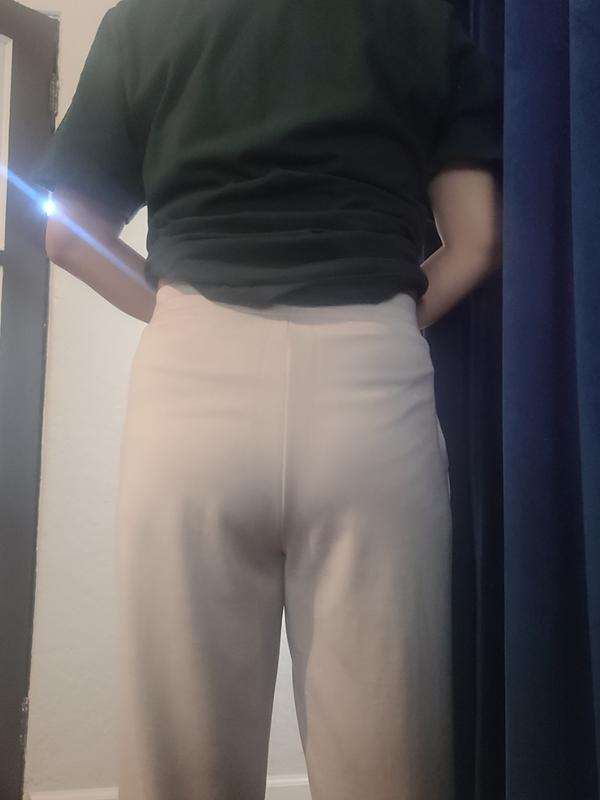The pants are baggy which is what is in fashion right now. The material is not my favorite since it feels like it might pill over time. There are no pockets in the front nor the back which can be an issue when it comes to how it fits and looks on your body. These pants would look nice with a black top but overall they are okay.